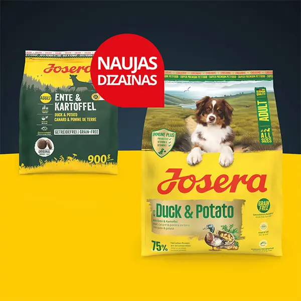 Būkite pirmas aprašęs “Josera A/S Duck + Potato begrūdis sausas pašaras šunims su antiena ir bulvėmis, 12,5 kg”