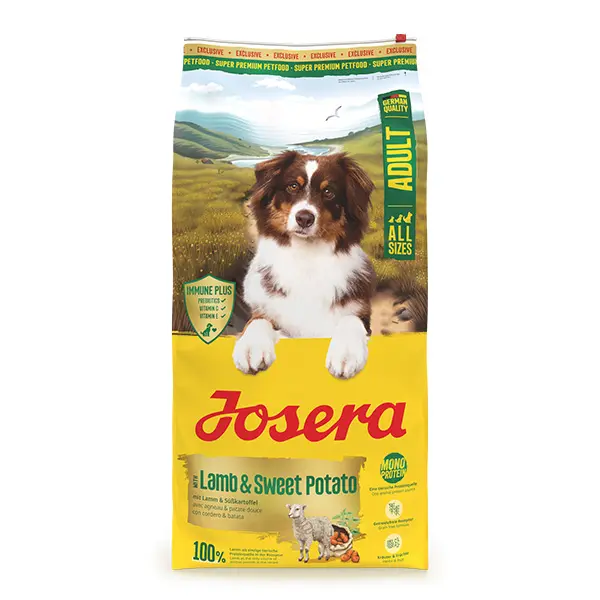 Josera Lamb & Sweet Potato – aukštos kokybės sausas pašaras suaugusiems šunims, sukurtas jautresniems augintiniams. Šis Josera šunų maistas išsiskiria tuo, kad sudėtyje naudojamas vienas gyvūninės kilmės baltymų šaltinis – ėriena, todėl yra tinkamas šunims, linkusiems į maisto netoleravimą ar jautresnį virškinimą.