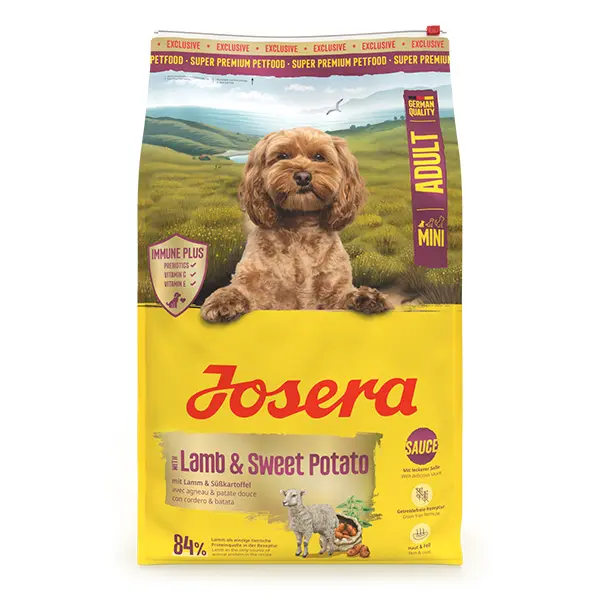 Josera Mini Lamb & Sweet Potato – sausas maistas mažų veislių šunims su ėriena ir saldžiosiomis bulvėmis.