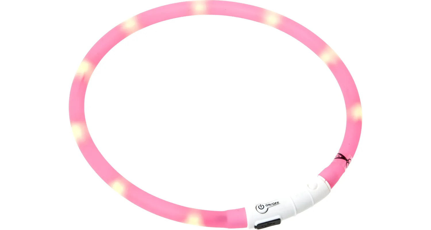 Flamingo Visio Light LED šviečiantis antkaklis šunims – saugumo ir matomumo sprendimas kiekvienam pasivaikščiojimui sutemus.